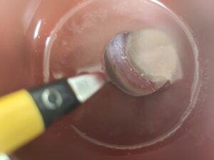 お湯が沸騰したらゼラチンのもとにかけて混ぜ合わせます。