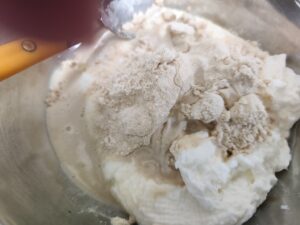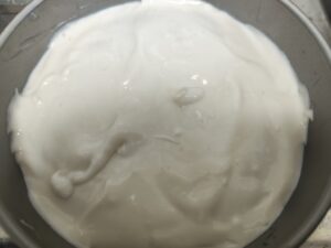 一番下のお椀ですが今回はヨーグルトを×3使うのでかなりのホエイが出るので小さいお椀だと垂れてきます。