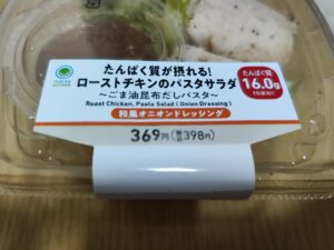 コンビニおすすめ商品二つ目はローストチキンパスタサラダでファミリーマートの商品ですね。