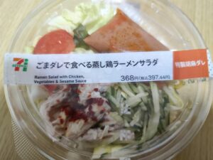 コンビニおすすめ商品その3はゴマダレ蒸し鶏ラーメンサラダでセブンイレブンの商品ですね。