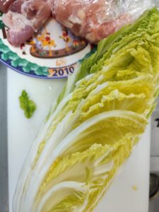 鶏肉と白菜を用意したら早速包丁で切ります。