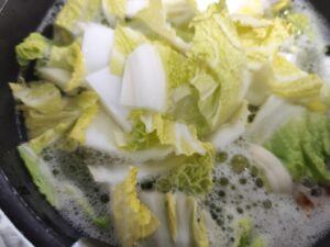 そのあとに鰹節と白菜を入れて煮ていきます。