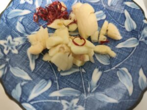 お話が変わりますがニンニクと鷹の爪を用意したらニンニクを切っていきましょう。
