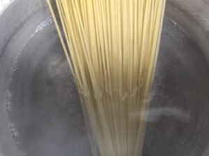 沸騰しましたらスパゲティの麺を入れていきましょう。