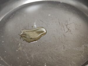 スパゲティの水切りまで行ったら次はフライパンでオリーブオイル小さじ1を入れていき温めます。