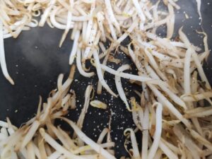 もやしを炒める