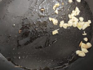 フライパンに油を入れてニンニクを炒める