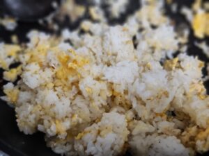 ごま油小さじ1といいましたが本格的なチャーハンを作りたい方やがっつり度合いを高めたい方は大さじ1以上でもいいと思います。
