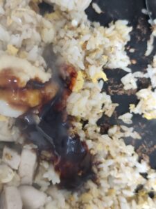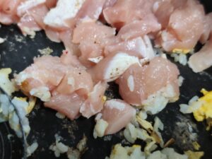 この後にご飯と同様鶏むね肉も炒めていきます。